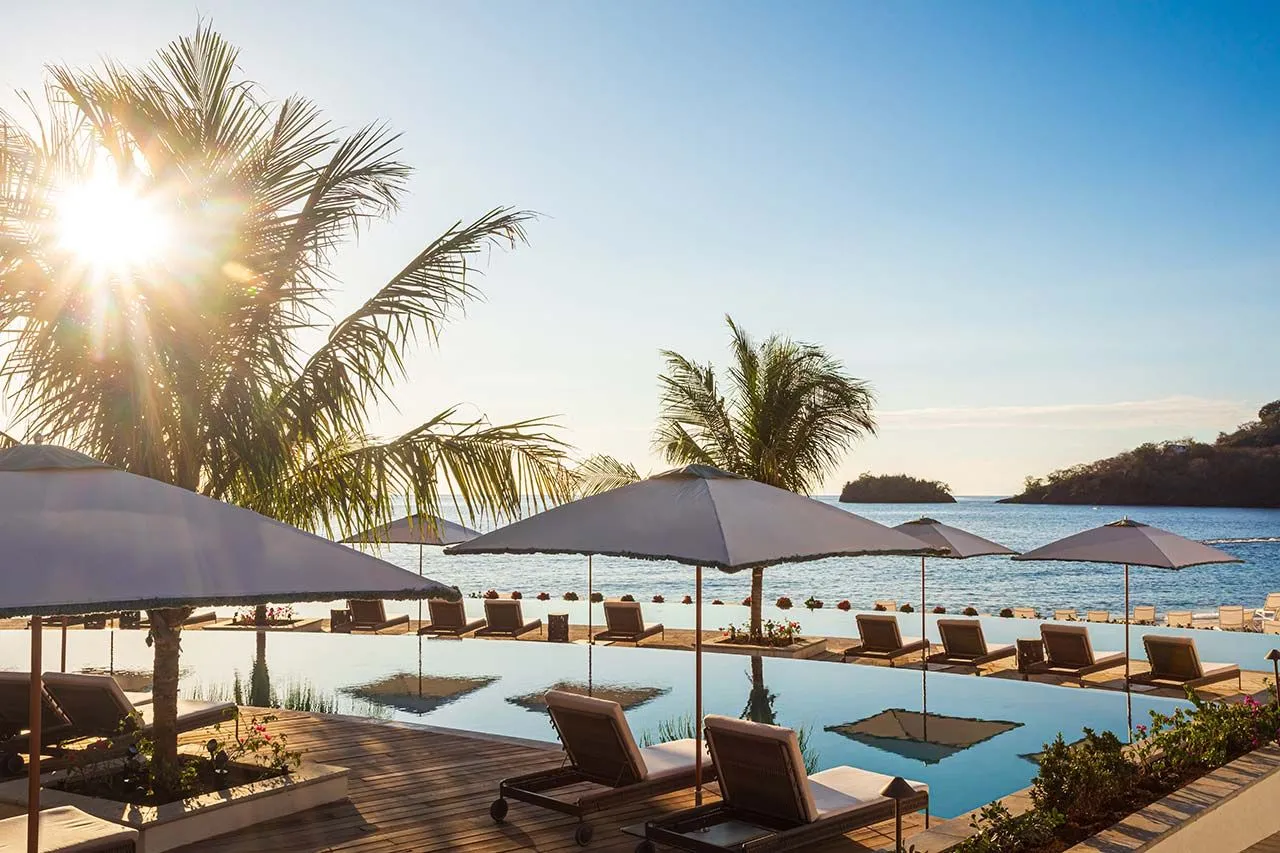 Guests who arrive at the top of the most overlooked and under-traveled chain of Caribbean islands find themselves in this classic crescent-shaped bay surrounded by lush mountains. Fittingly, guests of Sandals’ butler suites have the option of arriving by boat, just like explorers. A pool the length of a football field connects the beachfront to posh pool cabanas, a swim-up bar, and several food and beverage innovations: plant-based dishes at Imoro and tastes from the region’s craft distilleries at Three Jewels Rum Bar. Sandals carefully created an immersive experience to emphasize the purity of the islands, including views from Two-Story Over Water Villas and trails weaving through 50 acres of nature.